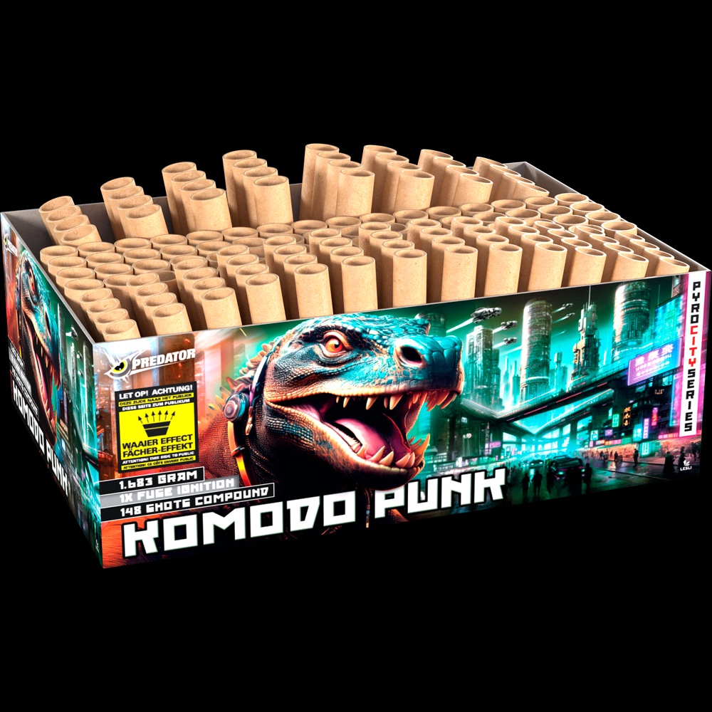 er Komodo Punk beißt sich mit 148 Schüssen, die eine atemberaubende, fächerförmige Show erzeugen in deinem Gedächtnis fest. Dieser „ Punk “ bietet ein beeindruckendes visuelles Erlebnis, bei dem starke Effekte aufeinander folgen. Lass Dich von den explosiven Farben und der Energie, die der Komodo Punk bei jedem Schuss bietet, überraschen!
